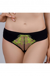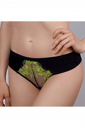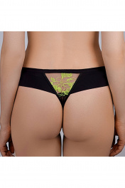 Трусы-стринг из эластичного полотна, сетки и неэластичной вышивки. Низкая посадка. По верху настрочена эластичная тесьма 15мм.