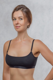 Бюстгальтер-топ для подростков из эластичного хлопкового полотна с эластичной широкой тесьмой по нижнему краю. Передняя деталь с подкладкой из хлопка. Бретель с регулировкой длины.