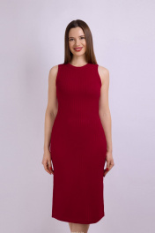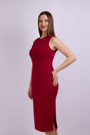Платье женское приталенного силуэта из эластичного трикотажного полотна "лапша" без рукавов. Горловина круглая. Длина изделия ниже колена. Боковые швы платья с разрезами.