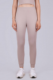 Брюки женские из эластичного трикотажного полотна "рубчик". Брюки прямые с манжетой внизу, посадка высокая, пояс с широкой резинкой.