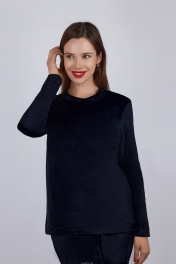 Джемпер женский из велюра. Рукав втачной. Длина до бедер. Горловина обработана широкой бейкой из основного материала.