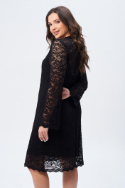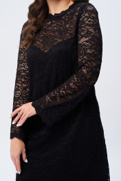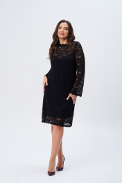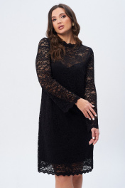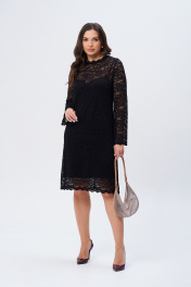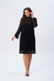 Платье женское А-образного силуэта. на подкладке. Выполнено из кружевной ткани. Горловина с ажурной стойкой. Застежка на петлю-пуговицу. Рукав втачной, длинный, слегка расширенный книзу.