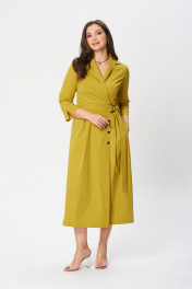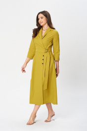 А-образное платье с поясом и карманами из хлопкового текстиля Verita 2348 горчица