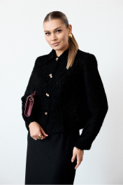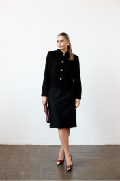 Комплект нарядный,состоящий из жакета и юбки. Жакет полуприлегающего силуэта, без подкладки с застёжкой на петли пуговицы. Воротник на отрезной стойке. Рукав втачной. Юбка без подкладки, с высокой талией. На поясе,зауженная к низу. По Заднему полотнищу средний шов со шлицей. Застегивается на молнию.