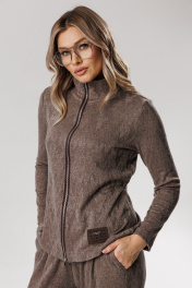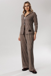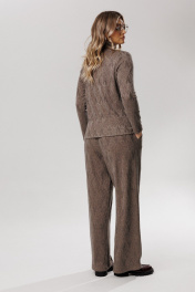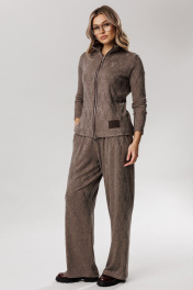 Трикотажный комплект состоящий из джемпера и брюк Джемпер полуприлегающего силуэта, с втачным длинным рукавом. Горловина со стойкой. По переду застежка на молнию. Брюки прямые с поясом на резинке. В боковых швах карманы.