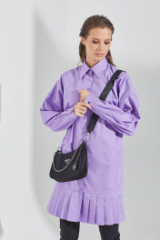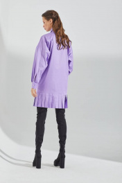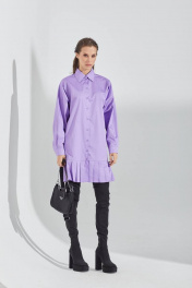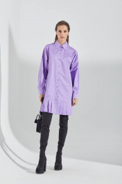 Платье-рубашка прямого силуэта, выполнена из хлопковой ткани. Застежка по переду на петли и пуговицы. Воротник рубашечный. Рукава длинные, низ на манжете. Манжета с застежкой на кнопку. По низу изделия отделка в виде складок. Длина до середины бедра. 44 р-р: ОГ - 104 см., ОТ - 102 см., ОБ - 104 см. 46 р-р: ОГ - 108 см., ОТ - 106 см., ОБ - 108 см. 48 р-р: ОГ - 112 см., ОТ - 110 см., ОБ - 112 см. 50 р-р: ОГ - 116 см., ОТ - 114 см., ОБ - 116 см.