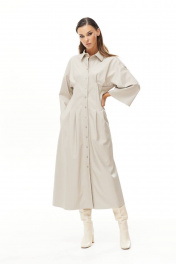 Платье из «эко» кожи полуприлегающего силуэта. Длина миди. Застежка по переду на кнопки. Воротник рубашечный. Рукав широкий, длина 3/4. В боковых швах карманы. 44 р-р: ОГ - 92 см., ОТ - 83 см., ОБ - 126 см. 46 р-р: ОГ - 96 см., ОТ - 87 см., ОБ - 130 см. 48 р-р: ОГ - 100 см., ОТ - 91 см., ОБ - 134 см. 50 р-р: ОГ - 104 см., ОТ - 95 см., ОБ - 138 см.