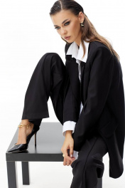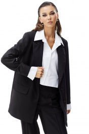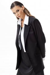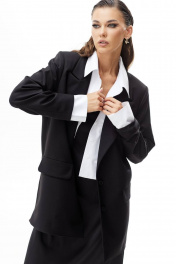 Жакет прямого силуэта. Застежка на петли и пуговицы. Воротник пиджачного типа. На переде карманы с клапаном. Рукав прямой двухшовный. Жакет на подкладке. В комплекте с жакетом съемные элементы: имитация рубашки и манжеты. Элементы фиксируются на петли и пуговицы и выполнены из хлопковой ткани. 42 р-р: ОГ - 102 см., ОТ - 100 см., ОБ - 100 см. 44 р-р: ОГ - 106 см., ОТ - 104 см., ОБ - 104 см. 46 р-р: ОГ - 110 см., ОТ - 108 см., ОБ - 108 см. 48 р-р: ОГ - 114 см., ОТ - 112 см., ОБ - 112 см. 50 р-р: ОГ - 118 см., ОТ - 116 см., ОБ - 116 см. 52 р-р: ОГ - 122 см., ОТ - 120 см., ОБ - 120 см.