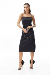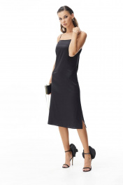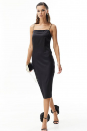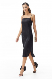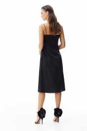 Платье на бретелях из струящейся ткани. Длина миди. Застежка в левом боковом на потайную молнию. Слева разрез 32см.