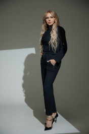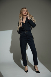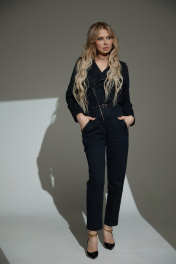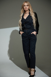 Комбинезон выполнен из джинсовой ткани. Застежка на отделочную тесьму-молнию по косой. Спереди прорезные карманы с застежкой на отделочную тесьму-молнию, сзади накладные карманы. Воротник стойка, по плечевым отделочная пата. Рукав втачной, длина регулируется патой. В комплекте съемный ремень. 42 р-р: ОГ - 94 см., ОТ - 92 см., ОБ - 98 см. 44 р-р: ОГ - 98 см., ОТ - 96 см., ОБ - 102 см. 46 р-р: ОГ - 102 см., ОТ - 100 см., ОБ - 106 см. 48 р-р: ОГ - 106 см., ОТ - 104 см., ОБ - 110 см.