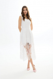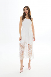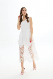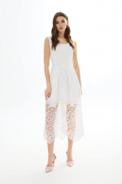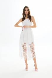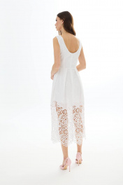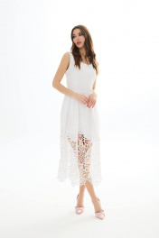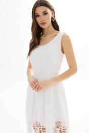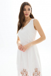 Летнее платье, выполнено из хлопковой ткани с эксклюзивным шитьем по низу (на хлопковой подкладке). Платье отрезное по линии талии: верх прилегающего силуэта по спинке овальный вырез 23 см, нижняя часть с заложенными складками вкруговую. Застежка на потайную тесьму-молнию в среднем шве спинки. 44 р-р: ОГ - 88 см., ОТ - 73 см, ОБ - 132 см. 46 р-р: ОГ - 92 см., ОТ - 77 см, ОБ - 136 см. 48 р-р: ОГ - 96 см., ОТ - 81 см, ОБ - 140 см. 50 р-р: ОГ - 100 см., ОТ - 85 см, ОБ - 144 см. 52 р-р: ОГ - 104 см., ОТ - 89 см, ОБ - 148 см.
