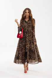 Демисезонное креповое платье миди с поясом Vesnaletto 3925-1