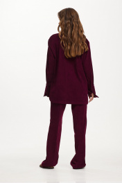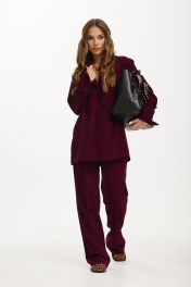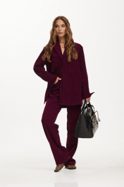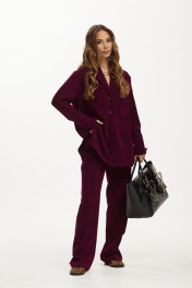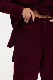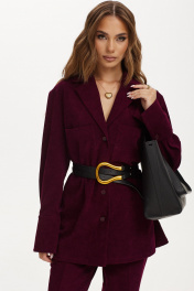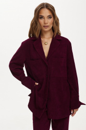 Жакет мягкой формы из ткани вельвет-рубчик. Застежка на петли и пуговицы. Воротник пиджачного типа. По спинке кокетка и две складки. Рукав рубашечный с манжетой по низу. Застежка на манжете на петлю и пуговицу. На переде накладные карманы.