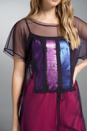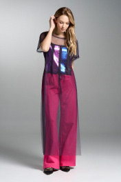 Туника из сетки с разрезами и расширенными брюками VI ORO VR-1031 фуксия