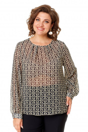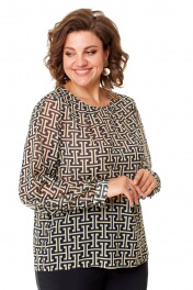 Деловой демисезонный костюм 2-ка из текстиля и шифона VI ORO VR-1147 черный_беж_фенди