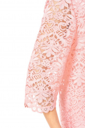 Комплект женский состоит из платья и кардигана. Платье женское полуприлегающего силуэта с естественной линией плеча, без рукавов.По переду выполнены нагрудные и талевые вытачки.Спинка с вытачками.В среднем шве спинки застежка на потайную тесьму-молнию и шлица.Проймы платья окантованы.Кардиган свободного покроя с естественной линией плеча выполнен из кружевного полотна premium качества.Рукав втачной одношовный длиной 3/4.Перед с нагрудными вытачками.Обработаны отрезные планки с имитацией пиджачного воротника.Комплект подойдет на любое торжество.