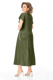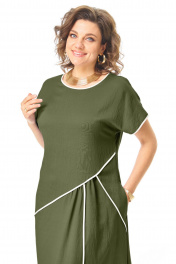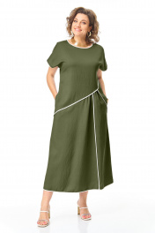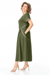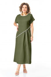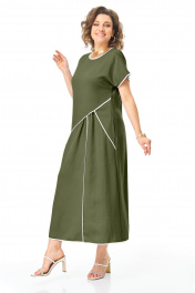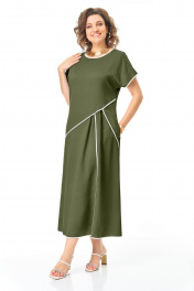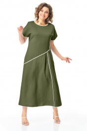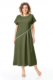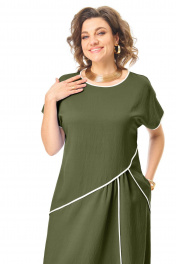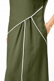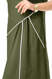 Платье женское А-образного силуэта со спущенной линией плеча.Рукав типа "летучая мышь".Горловина округлой формы.В среднем шве спинки застежка на тесьму-молнию.По переду выполнен ряд ассиметричных подрезов с кантами контрастного цвета и легкая сборка.В боковых швах обработаны карманы.Горловина, низ рукава и платья окантованы тканью контрастного цвета.