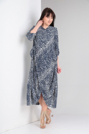 Платье из плательной весенней ткани с принтом. По переду платья расположены накладные карманы, на задней половинке платья по низу разрез, рукав втачной, с отделочным элементом пата . длина платья по спинке= 124см длина рукава = 60см