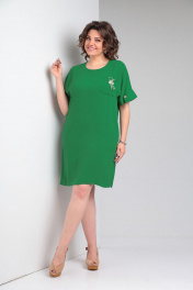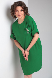 Платье свободного силуэта с карманами и пуговицей VIA-Mod 635 зеленый
