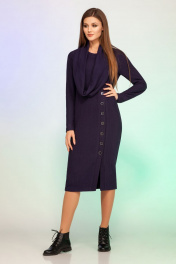 Платье демисезонное из вискозы и трикотажа с декоративным подрезом Vitol Fashion В-1000 синий