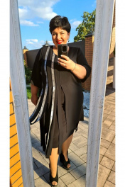 Собираем лайки!!! Классный комплект отлично впишется в любой гардероб. Эффектное, неординарное дизайнерское решение придётся кстати, а модная тесьма дополняет образ. Комплект состоит из туники прямого силуэта и нижнего, полуприлегающего платья, выполненного из эластичного полотна. По переду туники расположены с одной стороны нагрудная выточка, с другой- вертикальные подрезы с обработанными разрезами, вдоль подрезов настрочена декоративная тесьма, вырез горловины округлой формы. Низ изделия разно уровневый. По спинке расположена декоративная застёжка на петли и пуговицы, нижние две пуговицы – функциональны. Рукав втачной, одношовный с притачной манжетой. Длина рукава 40 см. Длина туники 110 см (р-р 50-52), 112 см (р-р 54-56), 115 см (р-р 58-60). Нижнее платье без рукава, с округлым вырезом, на спинке расположены талиевые вытачки. Длина платья 110 см (р-р 50-54), 113 см (р-р 56-60). туника 50 52 54 56 58 60 обхват груди 108 112 116 120 124 128 обхват талии 106 110 114 118 122 126 обхват бедер 116 120 124 128 132 136 обхват рукава на уровне проймы 39 41 43 45 47 49 платье 50 52 54 56 58 60 обхват груди 98 102 106 110 114 118 обхват бедер 106 110 114 118 122 126