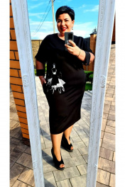 Супер- комфортное платье силуэта овал из трикотажа с дизайнерской печатью. По переду расположена печать с пришивным декоративным бантом из отделочной ткани, в боковых швах выполнены карманы, вырез горловины округлой формы. Спинка без особенностей. Рукав на базе цельнокроеного с притачной деталью из евро сетки и манжетой из отделочной ткани. Длина рукава с плечом от горловины около 55 см (р-р 48-52), 56 см (р-р 54), 57 см (р-р 56), 59 см (р-р 58), 60 см (р-р 60), 61 см (р-р 62-64), 62 см (р-р 66). Длина изделия 105 см (р-р 48-50), 111 см (р-р 52-56), 115 см (р-р 58-62), 118 см (р-р 66). платье 48 50 52 54 56 58 60 62 64 66 обхват талии 104 108 112 116 120 124 128 132 136 140 обхват бедер 108 112 118 122 126 130 134 138 142 146 обхват рукава внизу 30 30 32 32 32 34 34 34 36 36