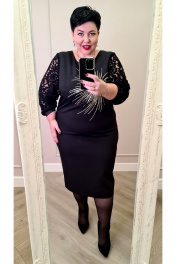 Хотите удивлять и сверкать?) Тогда это платье именно для вас! Вышивка пайетками создает праздничное настроение! Платье прямого силуэта. Горловина округлой формы, по переду расположены нагрудные вытачки. По спинке расположена кокетка из гипюра, средний шов, талиевые вытачки, по среднему шву от горловины декоративные пуговицы и шлица. Рукава втачные, одношовные из гипюра с притачными манжетами из декоративной тесьмы. Длина рукава с учетом манжеты 64 см. Длина платья 107 см (р-р 50-54), 112 см (р-р 56-60). платье 50 52 54 56 58 60 обхват груди 106 110 114 118 122 126 обхват бедер 112 116 120 124 128 132 обхват рукава на уровне проймы 38 40 42 44 46 48