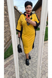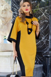 Изящное и стильное платье длиной миди будет вашим фаворитом этой осенью! Его силуэт и конструкция зрительно уменьшают объем, акцент сделан на контрастах цветов и графичности. Горловина с воротником стойкой, по переду нагрудные вытачки, контрастные отрезные бочки, по плечевому шву и рукаву вставка, по низу изделие заужено. Спинка контрастного цвета. Рукав цельнокроеный, отрезной, по низу притачная манжета. К платью идет дизайнерское украшение. Длина платья 110 см (р.50-54), 115 см (р.56-60), длина рукава 51,5см (р.50-54), 53,5 см (р.56-60). платье 50 52 54 56 58 60 обхват груди 110 114 118 122 126 130 обхват талии 104 108 112 122 126 130 обхват бедер 114 118 122 126 130 134 ширина рукава вверху 42 44 46 47 49 50
