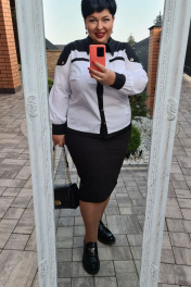 Когда классика может быть не скучной! Предлагаем вам очаровательный стильный комплект, который состоит из блузки и юбки. Блузка с воротником и планкой на петли и пуговицы. По переду фигурная кокетка переходящая в рукав, на кокетке люверсы, накладные карманы с контрастными вставками, нагрудные вытачки. По низу контрастная планка, бок с фигурным вырезом. Спинка с фигурной кокеткой и люверсами, талиевые вытачки. По низу контрастная планка. Рукав втачной с фигурным окатом, по низу сборка, широкая манжета на петли и пуговицы. Юбка на поясе, по переду центральный шов, талиевые вытачки, по низу фигурный вырез, на заднем полотнище средний шов, талиевые вытачки, в шве потайная молния, шлица. Юбка на подкладке. Обращаем ваше внимание, что фурнитура может незначительно отличаться от фото. Длина блузки 61см (р-р 50-54), 62см (р-р 56-60). Длина рукава 75см(р-р50-54), 76см (р-р56-60) РУБАШКА 50 52 54 56 58 60 обхват груди 106 110 114 118 122 126 обхват талии обхват бедер 112 116 120 124 128 132 обхват рукава на уровне проймы 36 38 40 42 44 46 ЮБКА 50 52 54 56 58 60 "ширина по талии (с резинкой)" 88 92 96 100 104 108 ширина на уровне линии бедер 110 114 118 122 126 130