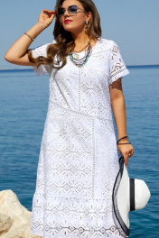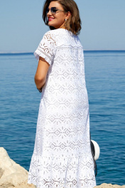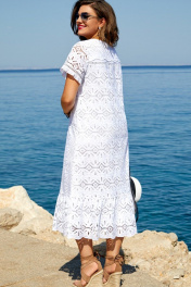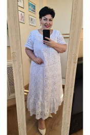Мы в восторге от этого платья, а вы?) Особенно красиво смотряться ассиметричные подрезы с ришелье, визуально вытягивая силуэт! По переду горловина округлой формы, ассиметричные подрезы со вставками из кружева, в вертикальных подрезах фестоны, нагрудные вытачки, по низу волан на сборке с фестонами. По спинке кокетка с фестонами и кружевом, по низу волан на сборке с фестонами. Рукав втачной с кружевом и рюшей. Платье на подкладке. Длина платья 124 см (р.54-58), 126 см (р.60-64). Длина рукава 22 см (р.54-58), 23 см (р.60-64). платье 54 56 58 60 62 64 обхват груди 116 120 124 128 132 136 обхват талии 122 126 130 134 138 142 обхват бедер 136 140 144 148 152 156 ширина рукава вверху 43 45 47 50 52 54