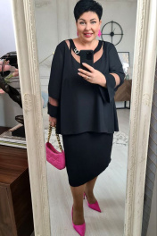 Лаконичность и стиль сливаются в этом модном платье. Стильное сочетание оттенков чёрного цвета в данной модели придаёт платью необычность. В данном платье Вы будете неотразимы как на праздничной вечеринке, так и в вечернем выходе. Платье полуприлегающего силуэта с отлетной ассиметричной деталью верха, горловина в платье округлая с вставкой из сетки в подрез по переду платья. В боковом шве платья застёжка на молнию. Спинка с средним швом и шлицей. Рукав втачной широкий с притачной деталью из евро сетки и манжетой. Обращаем ваше внимание, что фурнитура может незначительно отличаться от фото. Длина платья от высшей точки плечевого шва до низа 109 см (р.52-56), 112 см (р.58-62). Длина рукава 50 см. платье 52 54 56 58 60 62 обхват груди 110 114 118 122 126 130 обхват талии 108 112 116 120 124 128 обхват бедер 120 124 128 132 136 140 ширина рукава вверху 40 42 44 46 48 50
