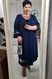 Лаконичное и стильное платье с красивой отделочной тесьмой в виде бусин по горловине переда, рукаву и боковому подрезу. Свободный силуэт подойдет на разные типы фигур. Платье идеально для любых торжеств и мероприятий. По переду горловина округлой формы и V-образным вырезом со вставкой из сетки на просвет, нагрудные вытачки. От бокового шва переда и спинки подрез с декоративным элементом из сетки на просвет. В горловине спинки разрез с застежкой на пуговицу. Рукава втачные, одношовные с декоративным элементом из сетки на просвет. Длина платья от высшей точки плечевого шва до низа 112 см (р.52-56), 115 см (р.58-62). Длина рукава 49 см. платье 52 54 56 58 60 62 обхват груди 116 120 124 128 132 136 обхват бедер 136 140 144 148 152 156 ширина рукава вверху 40 42 44 46 48 50