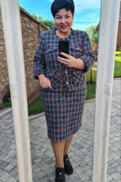 Классика, которая не подвластна времени! Костюм в стиле "Шанель" создает роскошный, утонченный образ. Его стиль, простота и утонченное совершенство делает женщину поистине элегантной. Костюм состоит из жакета и юбки. Жакет на подкладке, горловина округлой формы с бахромой, нагрудная вытачка, настрочены клапаны с бахромой и отделочной пуговицей, накладные карманы с клапаном, бахромой и отделочными пуговицами. Спинка с талиевыми вытачками. Рукав втачной, одношовный, по низу бахрома. Длина рукава 46 см. Длина жакета по центру спинки 56 см. Юбка на поясе с талиевыми вытачками. По бокам вставки с резинкой. На заднем полотнище средний срез со шлицей, талиевые вытачки. Юбка на подкладке. Длина юбки 65,5 см (р-р 50-54), 66,5 см (р-р 56-60). жакет 50 52 54 56 58 60 обхват груди 106 110 114 118 122 126 обхват талии 104 108 112 116 120 124 ширина изделия на уровне линии низа 114 118 122 126 130 134 ширина рукава вверху 39 41 43 44 46 48 юбка 50 52 54 56 58 60 ширина по талии (с резинкой в стянутом виде) 82 86 90 94 98 102 ширина на уровне линии бедер 110 114 118 120 124 128