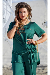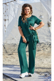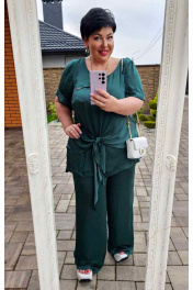 Стильный костюм насыщенного, глубокого цвета, который не оставит незамеченным никого, состоящий из блузы и брюк. Данная модель украсит Вас на любой праздник, вечеринку, а также станет неотъемлемой частью Вашего гардероба в отпуске. Данная ткань приятно холодит даже в самую жаркую погоду. Блуза прямого силуэта с округлой горловиной и отлетной ассиметричной деталью по полочке. По полочке настрочной карман с отложным уголком и вставкой из бокового шва. Рукав втачной, одношовный с отложной манжетой. Спинка блузы без особенностей. Брюки с широким поясом на резинке, длиной «в пол» имеют прямой свободный крой. Длина блузы 80 см (р.52-56), 82 см (р.58-62). Длина рукава 25 см. Длина брюк по боковому шву с поясом 108 см. блуза 52 54 56 58 60 62 обхват груди 112 116 120 124 128 132 обхват талии 124 128 132 136 140 144 ширина изделия на уровне линии бедер 134 138 142 146 150 154 ширина рукава вверху 42 44 46 480 50 52 брюки 52 54 56 58 60 62 ширина на уровне среднего шва 120 124 128 132 136 140 ширина по линии талии (с резинкой) 84 88 92 96 100 104 ширина по линии талии (без резинки) 116 120 124 128 132 136