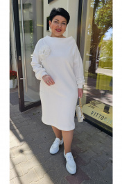 Вау какая красота! Стильное платье в лаконичном сочетании однотона с декоративными вставками из отделочной трикотажной ткани. Данная модель будет отличным вариантом как для работы в офисе, так и для повседневных образов. Платье идеально смотрится на разных типах фигуры: скроет недостатки, а также удачно подчеркнёт достоинства фигуры и поможет создать Вам уютный образ. Платье О-образного силуэта слегка заужено к низу; горловина округлой формы слегка завышена, линия плеча спущенная. По переду платья в качестве дополнительного отделочного элемента –декоративный цветок из отделочной ткани и шнура. Спинка с средним швом. Рукав втачной со сборкой на манжету, внутренняя часть рукава и манжета (на венгерке) из отделочной ткани. Длина платья от высшей точки плечевого шва до низа 108 см (р.48-58). Длина рукава от горловины до низа рукава 69 см(р.48,54), 70 см (р.50,56), 71 см( р.52,58). платье 48 50 52 54 56 58 обхват груди 112 116 120 124 128 132 обхват талии обхват бедер 108 112 116 120 124 128 ширина рукава вверху 39 39 39 42 42 42