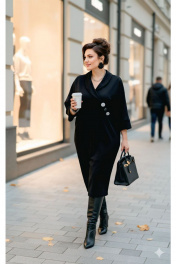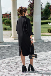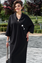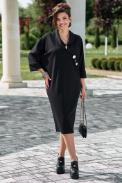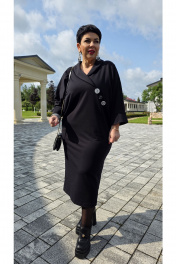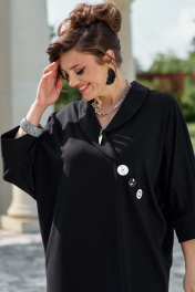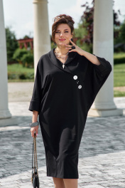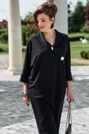 Интересный крой платья и пластические свойства трикотажного полотна помогут скрыть недостатки фигуры и создать идеальный образ. Платье свободного силуэта, заужается к низу. Горловина в платье открытая, с ассиметричным отложным воротником переходящим в подрез по переду платья. Спинка со средним швом. Рукав в платье по форме «летучая мышь» с притачной манжетой по низу.В качестве главного акцента платья, который приковывает взгляды, являются пришивные декоративные пуговицы контрастного цвета и разных размеров.Обращаем Ваше внимание, что фурнитура может незначительно отличаться от фото. Длина платья 112,5 см. Длина рукава 58 см (р.52-56), 60 (р.58-62).