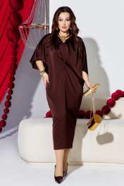Это платье — олицетворение силы и изящности: ярко, но не кричаще. Уверенный, волнующий наряд для торжественных мероприятий и важных встреч. Силуэт «летучая мышь» мягко обтекает фигуру, создавая плавный переход между линией плеч и линией талии, затем свободно распускается по бокам, позволяя ткани играть волной при каждом движении. Вырез горловины V-образной формы подчёркивает изящную шею, а рукава добавляют образу лёгкую драматичность и женственность. По переду платья средний шов, с застроченной складкой выше уровня талии переходящую в складку по плечу. Спинка в платье со средним швом с разрезом от низа. Рукав в платье цельнокроеный со щеловидным вырезом проймы. Длина платья 123 см, длина рукава 48 см (р 52-56), 48,5 см (р 58-62). Платье 52 54 56 58 60 62 обхват бедер 122 126 130 134 138 142 ширина рукава внизу 43 43 43 46 46 46