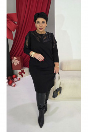 Оригинальное лаконичное платье, украшенное дизайнерской вышивкой с прозрачными элементами, рисуют образ сдержанной красоты и делают Вас поистине роскошной! Элегантный крой платья и пластические свойства инновационного трикотажного полотна помогут скрыть недостатки фигуры и создать идеальный силуэт. Платье прямого силуэта, свободного кроя с круглой горловиной, нагрудными вытачками, и втачными длинными рукавами. Верхняя часть переда и рукавов декорированы вышивкой со вставками из тончайшего кружева. По спинке платья вырез капелька с застёжкой на пуговицу в среднем шве. В боковых швах платья карманы. Длина платья 99 см (р 48-52), 101 см (р 54-58). Длина рукава 62 см. Платье 48 50 52 54 56 58 обхват груди 106 110 114 118 122 126 обхват талии 104 108 112 116 120 124 обхват бедер 112 116 120 124 128 132 ширина рукава вверху 34 36 38 40 42 44