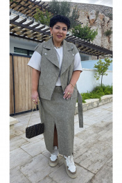 Женская юбка из денима с легкой потертостью придает винтажный шарм и характер. Она является своеобразной базой, которая легко комбинируется с различным верхом, позволяя быть разной, делая любой образ интересным. Юбка прямого силуэта, длины «миди» с ассиметричным подрезом по переду переходящим в разрез, с застёжкой на тесьму-молнию в гульфике и пуговицу в поясе юбки. По переду юбки прорезные карманы. По заднему полотнищу юбки накладные карманы. Пояс в юбке притачной со вставкой эластичной тесьмы-резинки в бочках, что обеспечивает комфортное прилегание по фигуре. Длина юбки 85см. Юбка 50 52 54 56 58 60 обхват талии 82/104 86/108 90/112 94/116 98/120 102/124 обхват бедер 116 120 124 128 132 136