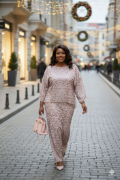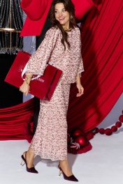 Изящный костюм состоит из блузы и юбки миди, украшенных крупной пайеткой пудрово-розового оттенка. Совокупность текстур делает акцент на женственности и утонченной роскоши: пудрово-розовый оттенок дарит мягкость и нежность, а крупная пайетка добавляет ансамблю праздничности и солнечного блеска. Пайетки крупной величины рассыпаны по всей поверхности, образуя эффект мягкого мерцания. Это наряд, который подойдет для вечерних мероприятий, светских раутов и торжественных встреч, вызывая восхищение и спокойную уверенность в себе.Блуза свободного силуэта, с округлой линией горловины. Линия плеча в блузе спущенная, рукав втачной, длиной 7/8. Спинка без особенностей. Низ в блузе ассиметричный. Блуза на отлетной подкладке. Юбка прямого силуэта, длины миди с притачным поясом с эластичной тесьмой-резинкой в круговую, что обеспечивает максимально удобную посадку на любой тип фигуры. В среднем шве юбки разрез от низа. Юбка на подкладке. Длина блузы по спинке 67 см (р 50-54), 68 см (р 56-60), длина рукава 31 см. Длина юбки 90 см. Блуза 50 52 54 56 58 60 обхват груди 124 124 124 132 132 132 ширина по низу 124 124 124 132 132 132 ширина рукава вверху 56 56 56 62 62 62 Юбка 50 52 54 56 58 60 обхват талии 80/110 84/114 88/118 92/122 96/126 100/130 обхват бедер 116 120 124 128 132 136 ширина пояса 4 4 4 4 4 4