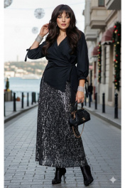 Блуза, юбка Vittoria Queen 27313 черно-серебристый