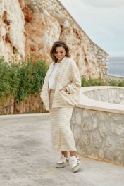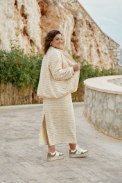Юбка длины «миди» является своеобразной базой, которая легко комбинируется с различным верхом, позволяя быть разной, делая любой образ интересным. Юбка прямого силуэта с притачным поясом со вставкой эластичной тесьмы-резинки в бочках. В среднем шве заднего полотнища юбки застёжка на молнию и пуговицу в поясе, и с разрезом от низа. Юбка на подкладке. Юбка длины «миди» является своеобразной базой, вокруг можно построить множество различных образов в зависимости от необходимости и сезона. Длина бомбера 71 см, длина рукава 72,5 см (р 50-54), 73,5 см (р 56-60). Длина юбки от пояса 92 см, ширина пояса 4 см. Юбка 50 52 54 56 58 60 обхвт талии 80/108 84/112 88/116 92/120 96/124 100/12 обхват бедер 116 120 124 128 132 136 ширина пояса 4 4 4 4 4 4