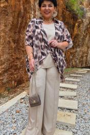 Летние брюки в бежевом оттенке— это не просто предмет гардероба, а инструмент самовыражения. Они сочетают в себе практичность и элегантность городских брюк, натуральность оттенков и универсальность нейтральной палитры. Эти брюки подходят для женщины, которая не делит жизнь на "повседневное" и "особенное" — для неё каждый день может быть особенным, если правильно его одеть. Они говорят: "Я готова к приключениям, но делаю это стильно". В конце концов, настоящий стиль — это не про следование правилам, а про умение создавать свои, и брюки светлом оттенке дают для этого идеальный холст. Сочетания: с спортивным топом — для активного дня; с oversize — расслабленный вайб; с футболкой с графическим принтом — молодёжный дух. Брюки прямого силуэта с притачным поясом на эластичной тесьме-резинке, что обеспечивает максимально удобную посадку на любой тип фигуры. По переду брюк застрочены «кантики». Это конструктивный приём, который позволяет визуально вытягивать фигуру. По переду брюк наклонные карманы. Длина брюк 108 см. Брюки 52 54 56 58 60 62 ширина по талии 84/114 88/118 92/122 96/126 100/130 104/134 обхват бедер 125 129 133 137 141 145
