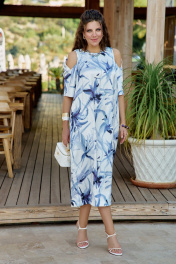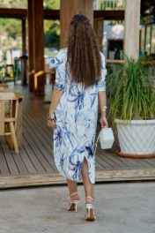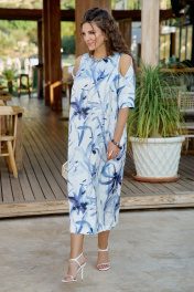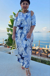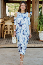Платье женское летнее в романтическом стиле из французского атласа с дизайном в утонченной акварельной технике. Платье свободное без подкладки, прямого силуэта по геометрическому подобию напоминает овал. Пластическая форма мягкая, плавная. Прилегание достигнуто за счет боковых рельефов. Плечевой пояс на естественном месте с зауженной линией плеча. Рукав втачной по низу и спинке, одношовный, с вырезами по переду и складкой, уходящей на спинку. Элемент кокетливо приоткрывает плечо, смотрится необычно и подходит для тех, кто привык нарушать установленные рамки. По спинке выполнена шлица в среднем шве, что позволяет свободно двигаться при этом сохраняет силуэт платья. Модель удачно впишется в гардероб, будет выглядеть элегантно и уместно. Удачно сядет на любую фигуру, комфортно в движении, подчеркивает талию и силуэт. Это универсальное платье для любого повода, оно легко комплектуется с жакетом любой длины. В нем можно пойти в ресторан, на свидание. Идеально подойдет на торжество, концерт, фотосессию. Длина платья 125 см (р 50-54), 126 см (р 56-60). Длина рукава 35 см. Платье 50 52 54 56 58 60 обхват груди 108 112 116 120 124 128 обхват бедер 122 126 130 134 138 142 ширина рукава внизу 35 37 39 39 41 43