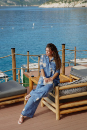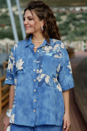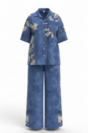 Костюм женский, двухпредметный, состоящий из блузки и брюк. Этот костюм — не про яркость, не про броскость, не про желание быть замеченным. Это про уверенность в себе, про понимание, что настоящая красота часто скрыта в деталях, это про комфорт каждый день. Костюм с идеальной посадкой подходит для образов как на каждый день, так и для особых случаев. Костюм выглядит сдержанно, почти монохромно, принт читается как тонкая деталь. Блузка свободного силуэта с центральной застёжкой на петли-пуговицы по планке, воротником рубашечного типа, По переду блузки накладные карманы, а также декоративные вставки из отделочной ткани с принтом. Линия плеча спущенная, рукав втачной, короткий с вставкой отделочной ткани с принтом. Спинка в блузке с отрезной кокеткой. В боковых швах от низа разрезы, для дополнительной динамики. Брюки прямого силуэта с притачным поясом на эластичной тесьме-резинке, что обеспечивает максимально удобную посадку на любой тип фигуры. В боковых швах брюк карманы. По переду брюк от низа декоративные вставки из отделочной ткани с принтом. Принтованные элементы — это не просто украшение, это смысловые акценты, расставляющие точки над «i» в данной модели. Длина блузки 76 см (р 52-56), 77 см (р 58-62). Длина рукава 23 см (р 52-56), 23,5 см (р 58-62). Длина брюк 108 см. Блузка 52 54 56 58 60 62 обхват груди 130 134 138 142 146 148 обхват бедер 133 137 141 145 149 153 ширина рукава вверху 44 46 48 48 50 52 Брюки 52 54 56 58 60 62 ширина по талии 84/114 88/118 92/122 96/126 100/130 104/134 обхват бедер 126 130 134 138 142 146