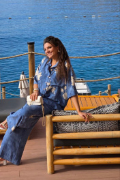 Блуза, брюки Vittoria Queen 28843 синий-меланж