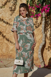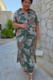 Стильное и лаконичное платье, в котором комфортно гулять даже в самую жаркую погоду, станет отличной базой в Вашем гардеробе, а ненавязчивыйй принт изделия будет притягивать к себе взгляды. Данная модель подойдёт как для похода на работу, так и для отдыха в путешествии. Платье прямого силуэта с центральной застёжкой на тесьму молнию по переду, отложным воротником с отделкой в виде декоративного шнура. По переду платья отлетная складка, в боковых швах карманы и высокие разрезы от низа. Спинка платья с отрезной кокеткой. Рукав цельнокроеный с отложной манжетой. Платье без подкладки. Длина платья 118 см (р 52-56), 119 см (р 58-62). Длина рукава (длина по плечу) 37 см (р 52-56), 38,5 см (р 58-62). Платье 52 54 56 58 60 62 обхват груди 124 128 132 136 140 144 обхват талии 122 126 130 134 138 142 обхват бедер 130 134 138 142 146 150
