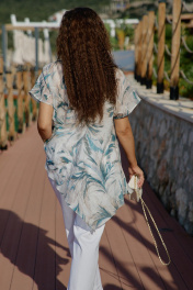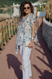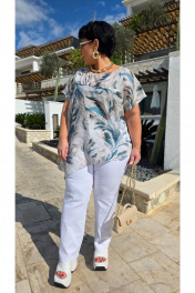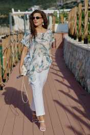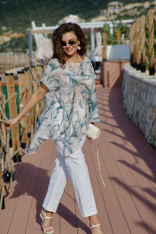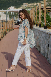 Блуза, брюки Vittoria Queen 28983 белый-бирюзовый