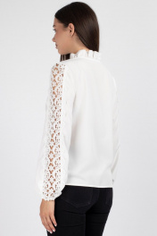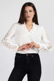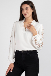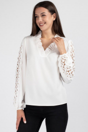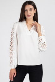Белая деловая блуза с кружевами и рюшей VIZAVI 695 молочный