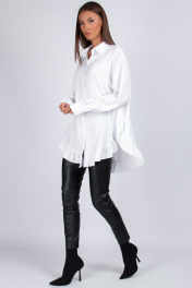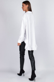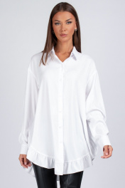 Знакомьтесь — наша новая женская блузка, которая доказывает, что оверсайз может быть невероятно нежным. Это не просто блузка рубашка, это маст-хэв для тех, кто ценит комфорт и изящные детали. Модель имеет прямой свободный силуэт со спущенным плечом — сидит мягко, не сковывая движений. Перед из двух частей с застежкой на 7 пуговиц создает классическую основу, а главный сюрприз ждет внизу: по низу переда и спинки добавлена притачная рюша. Эта деталь преображает свободную блузку, делая ее кокетливой и нарядной. Плотный воротник на отрезной стойке держит форму, придавая образу структурированность, а рукава с манжетами на двух пуговицах завершают композицию. Сочетайте несочетаемое: носите эту блузу с грубыми ботинками или легкими босоножками — везде она будет смотреться актуально. Уход: бережная стирка при температуре не выше 30°С." Один размер oversize подходит на 42-50